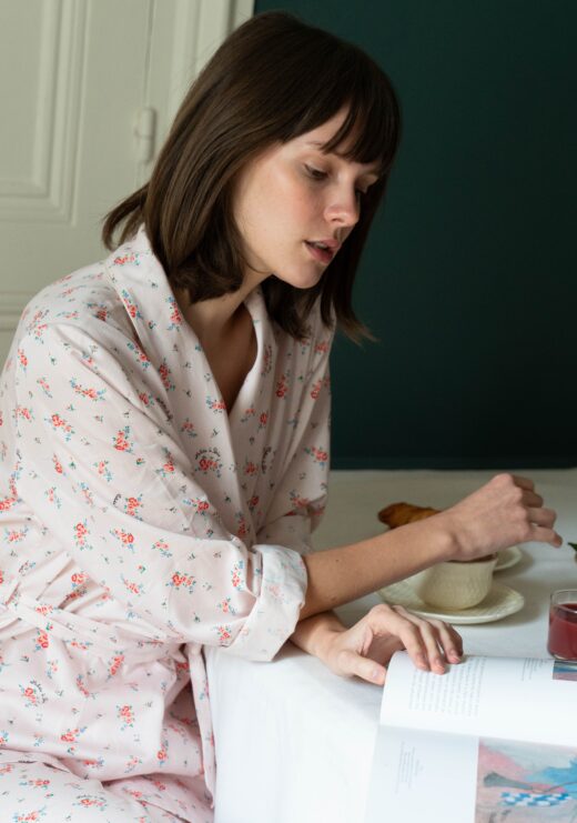 Ultra elegant pajamas, in soft cotton satin woven in France.