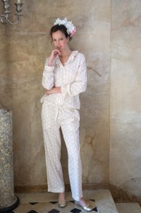 Pyjamas embellished with ruffles at the neckline and cuffs.